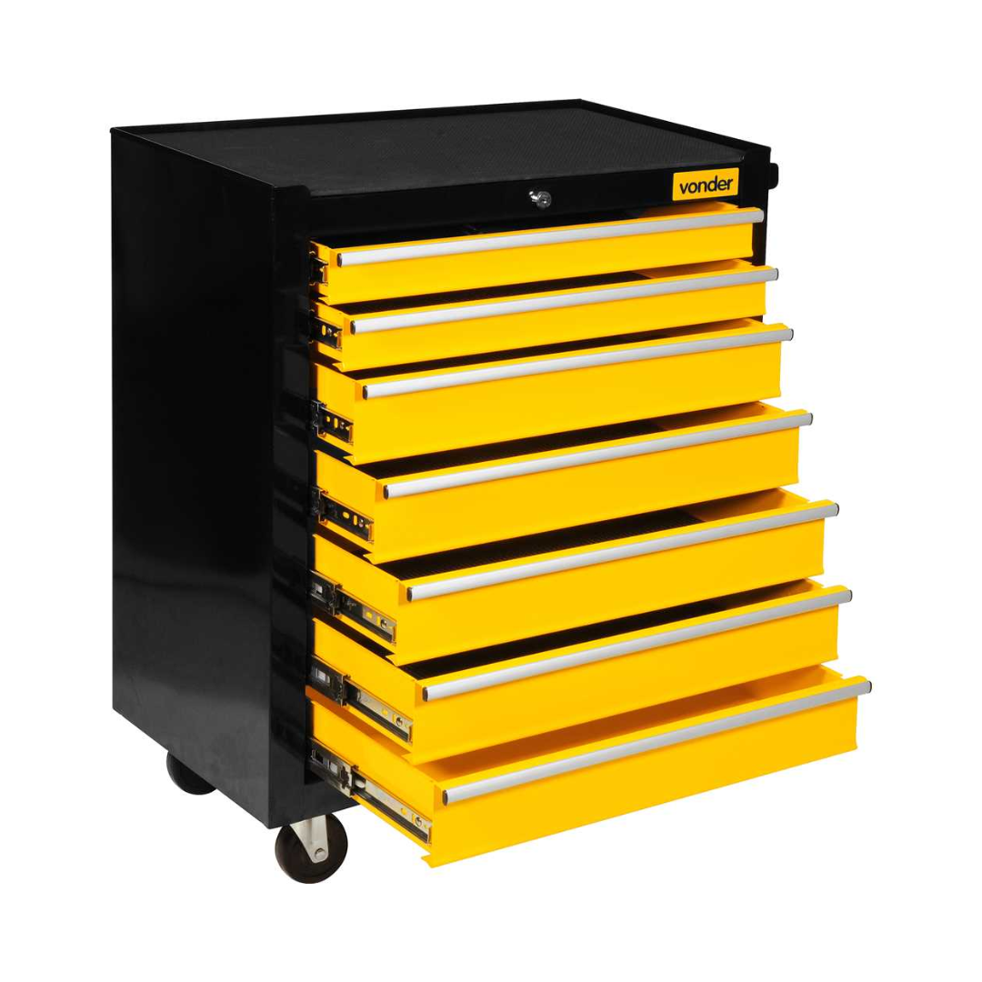 Organização Profissional (7 Gavetas): O carro conta com 7 gavetas em metal que oferecem amplo espaço para categorizar suas ferramentas. As bases das gavetas são revestidas com tapetes de borracha, que evitam a movimentação das ferramentas e protegem o material.