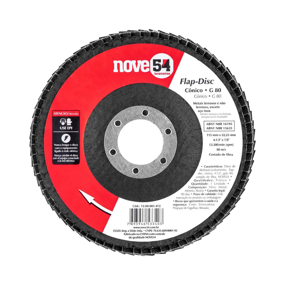 Flap-Disc Cônico NOVE54 - 4.1/2" G80