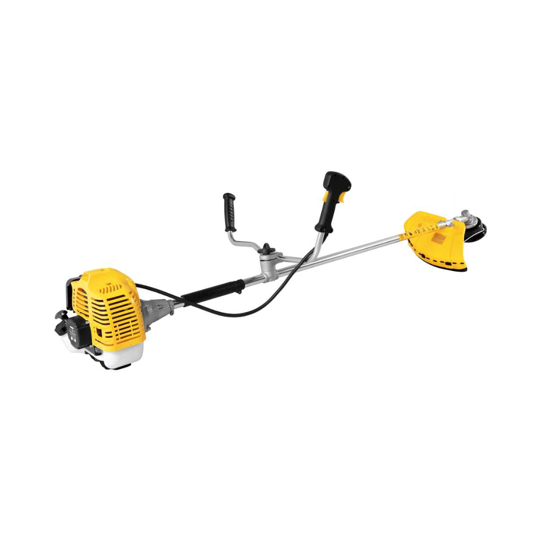 Conteúdo da Embalagem: 1 Roçadeira a gasolina, 1 lâmina 3 pontas, 1 carretel com fio de nylon, 1 cinto duplo com suporte, 1 frasco dosador e 1 kit com ferramentas.