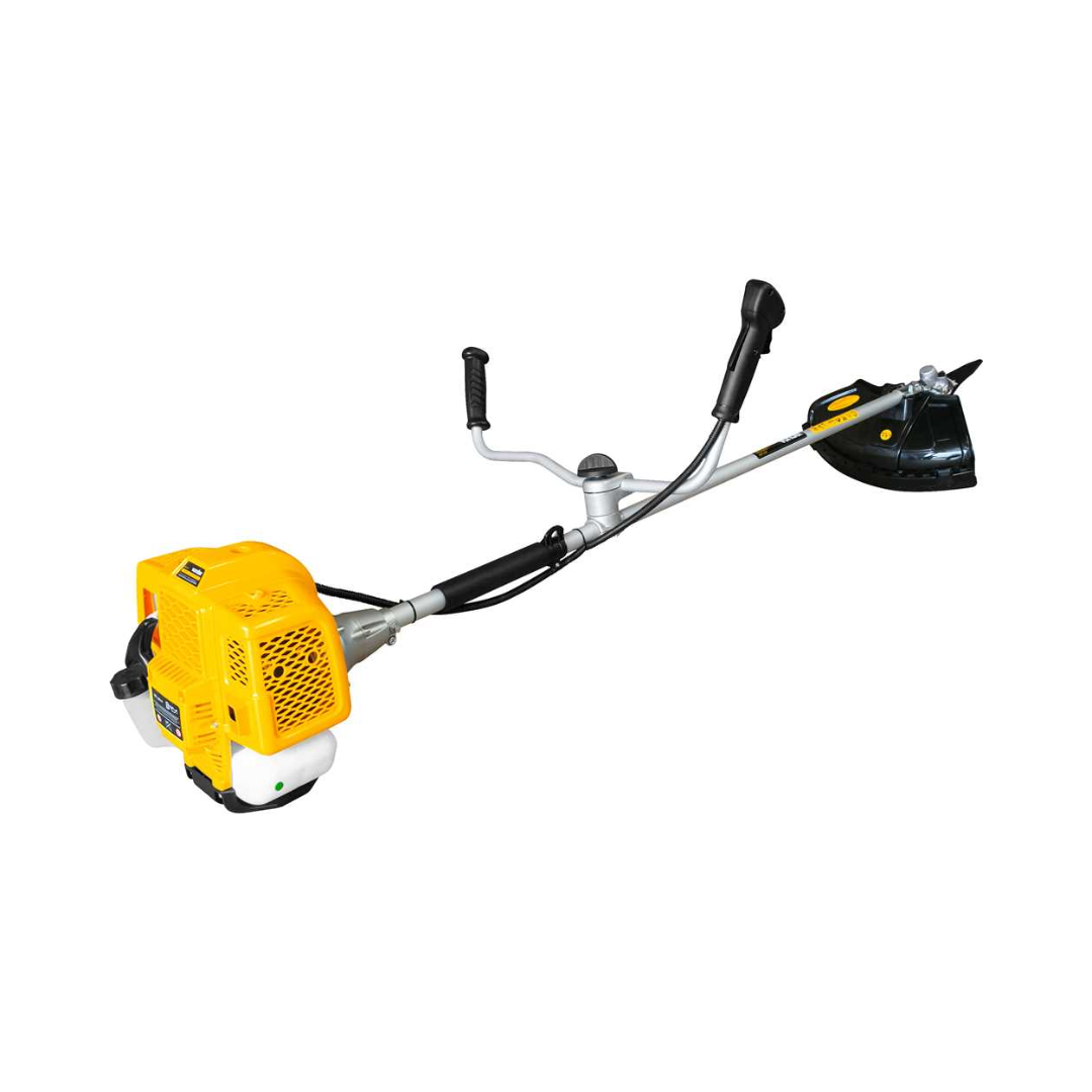 Conteúdo da Embalagem: 1 Roçadeira a gasolina, 1 lâmina 3 pontas, 1 carretel com fio de nylon, 1 cinto duplo com suporte, 1 frasco dosador e 1 kit com ferramentas.