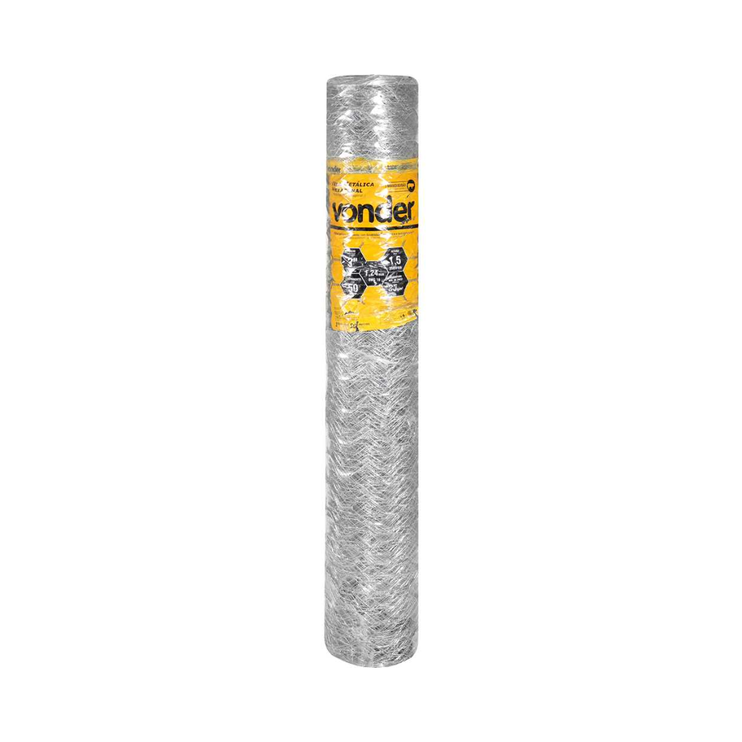 Tela Metálica Mangueirão VONDER | 1,5m x 50m | Malha 3" Fio 18 Galvanizada
